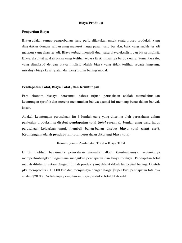 12.11.2021 · teori biaya biaya biaya produksi seluruh biaya oportunitas eksplisit implisit dan biaya tidak relevan dalam membuat output barang dan jasa from reader017.staticloud.net biaya eksplisit membantu dalam perhitungan laba akuntansi dan laba ekonomi.
